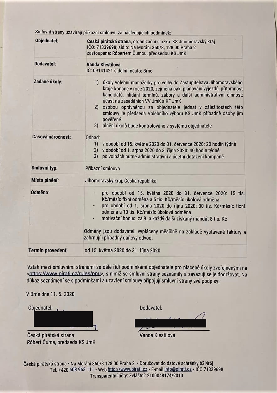| Souhrn | Příkazní smlouva - volební manažerka JmK |