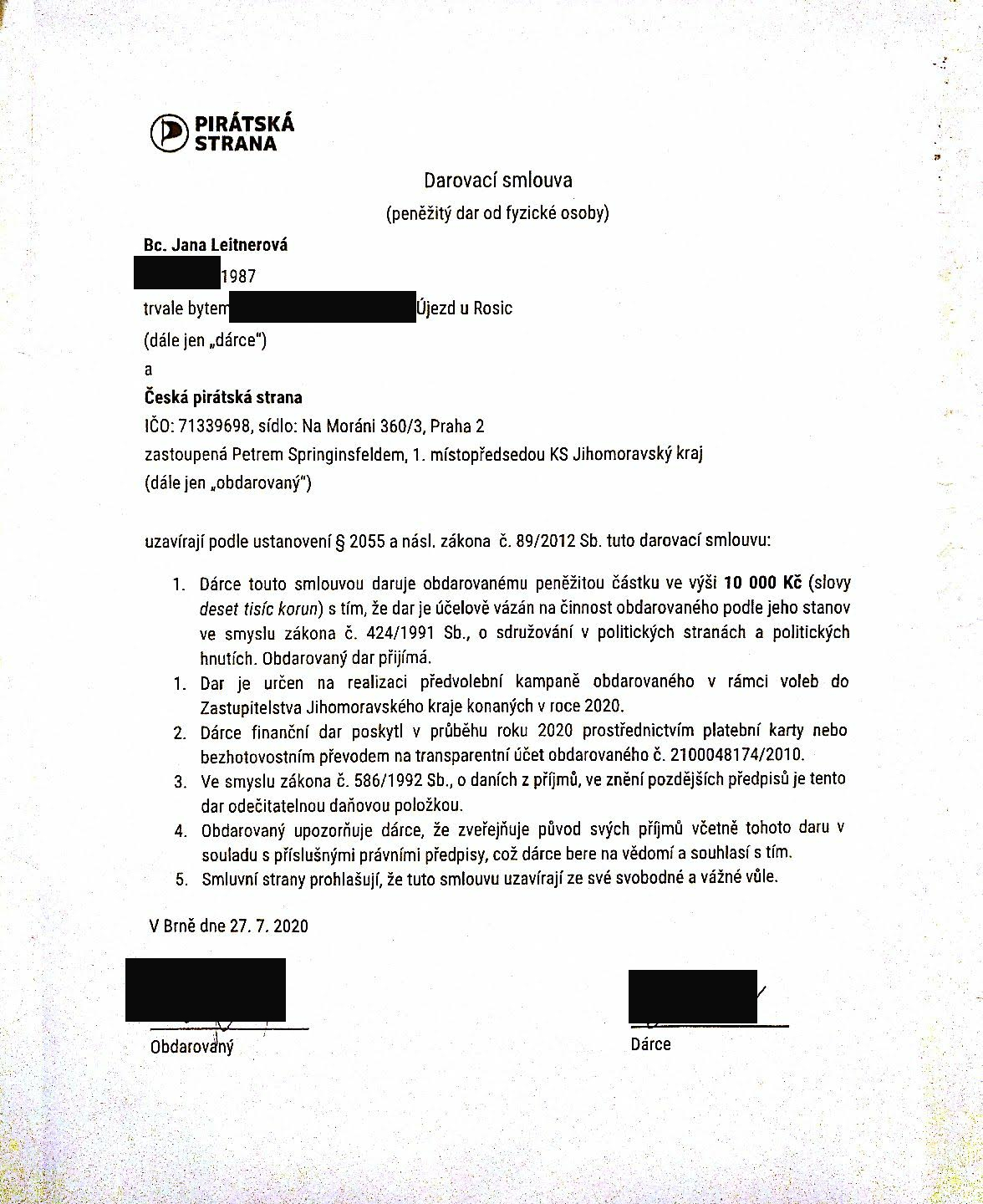 Darovací smlouva - Jana Leitnerová