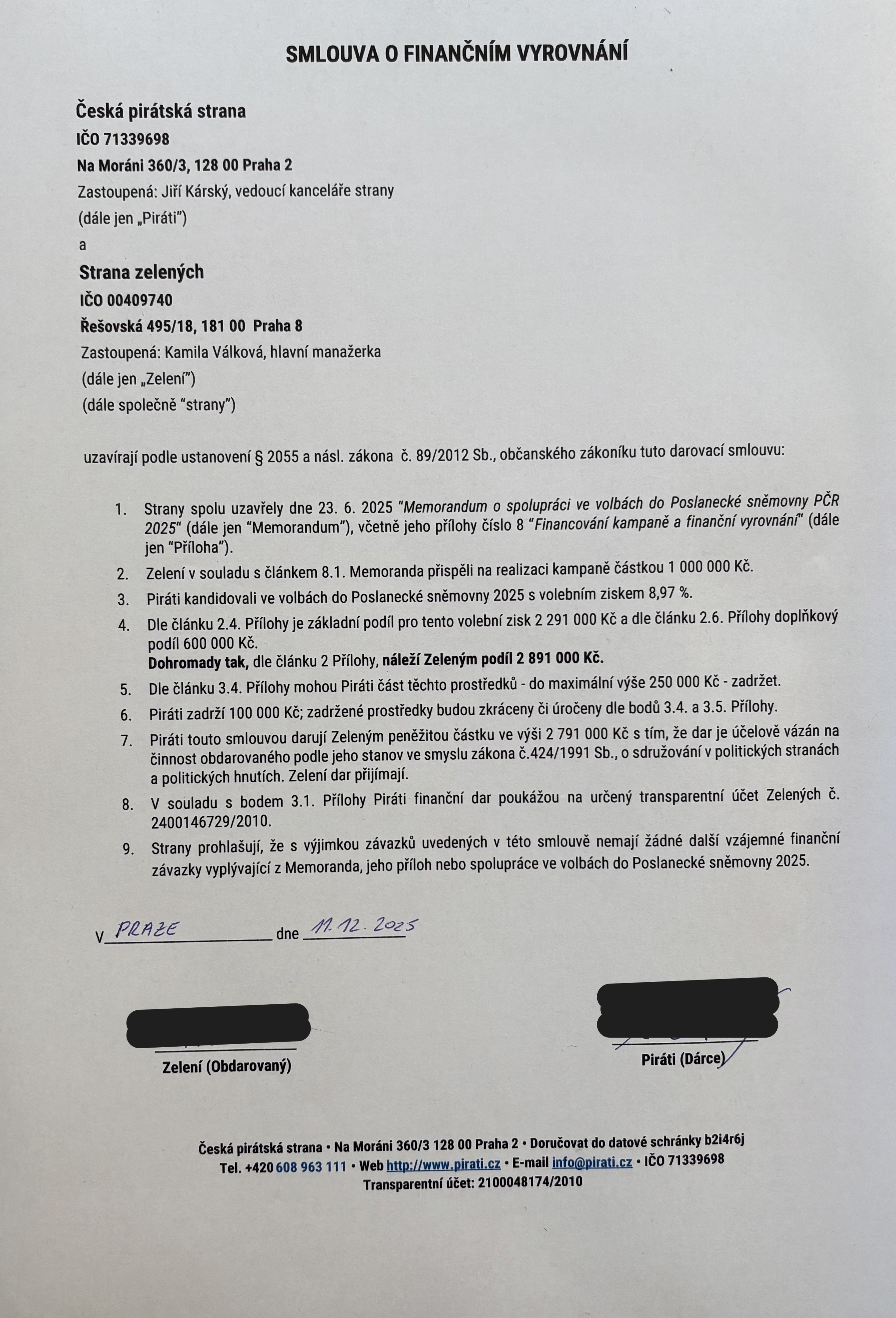Smlouva o finančním vyrovnání-Strana zelených-11.12.2025