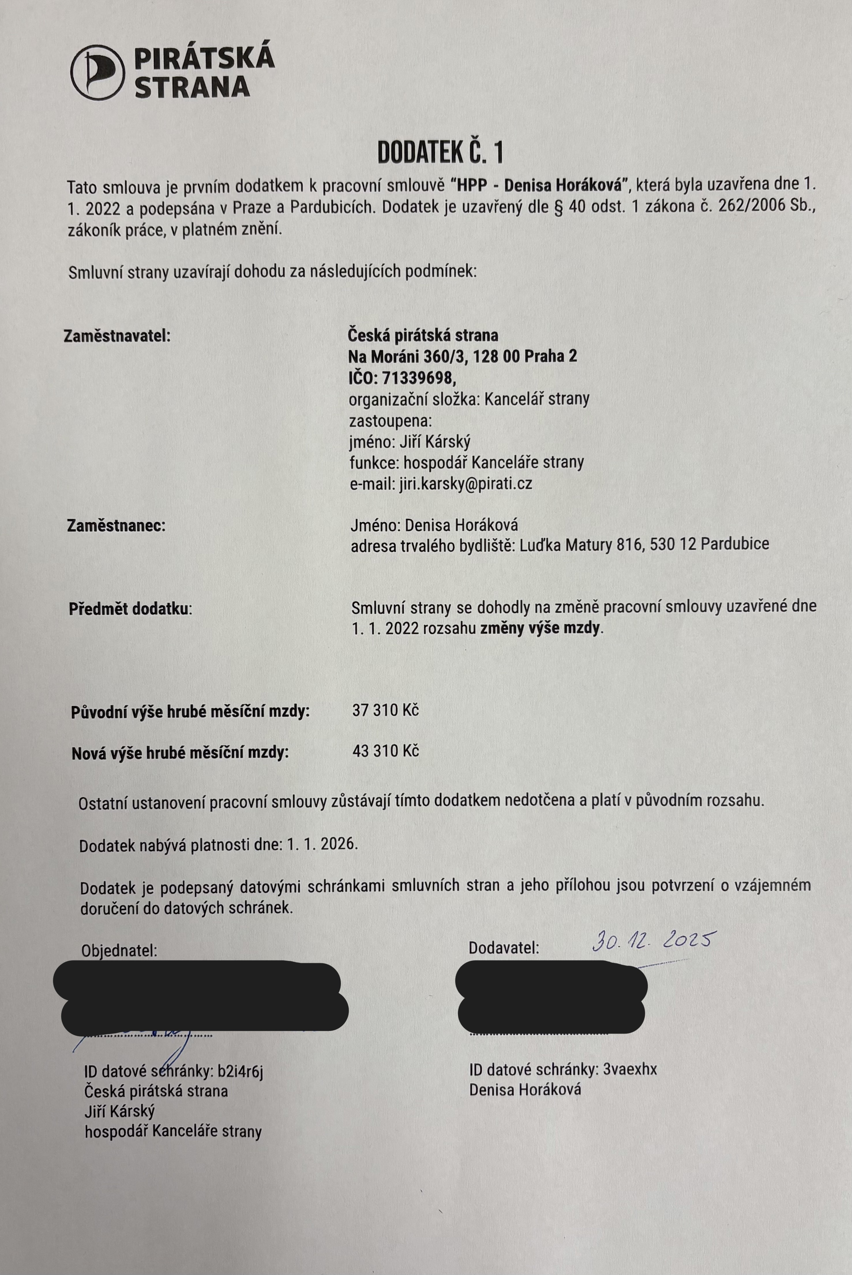 Dodatek č. 1-Denisa Horáková-1.1.2026